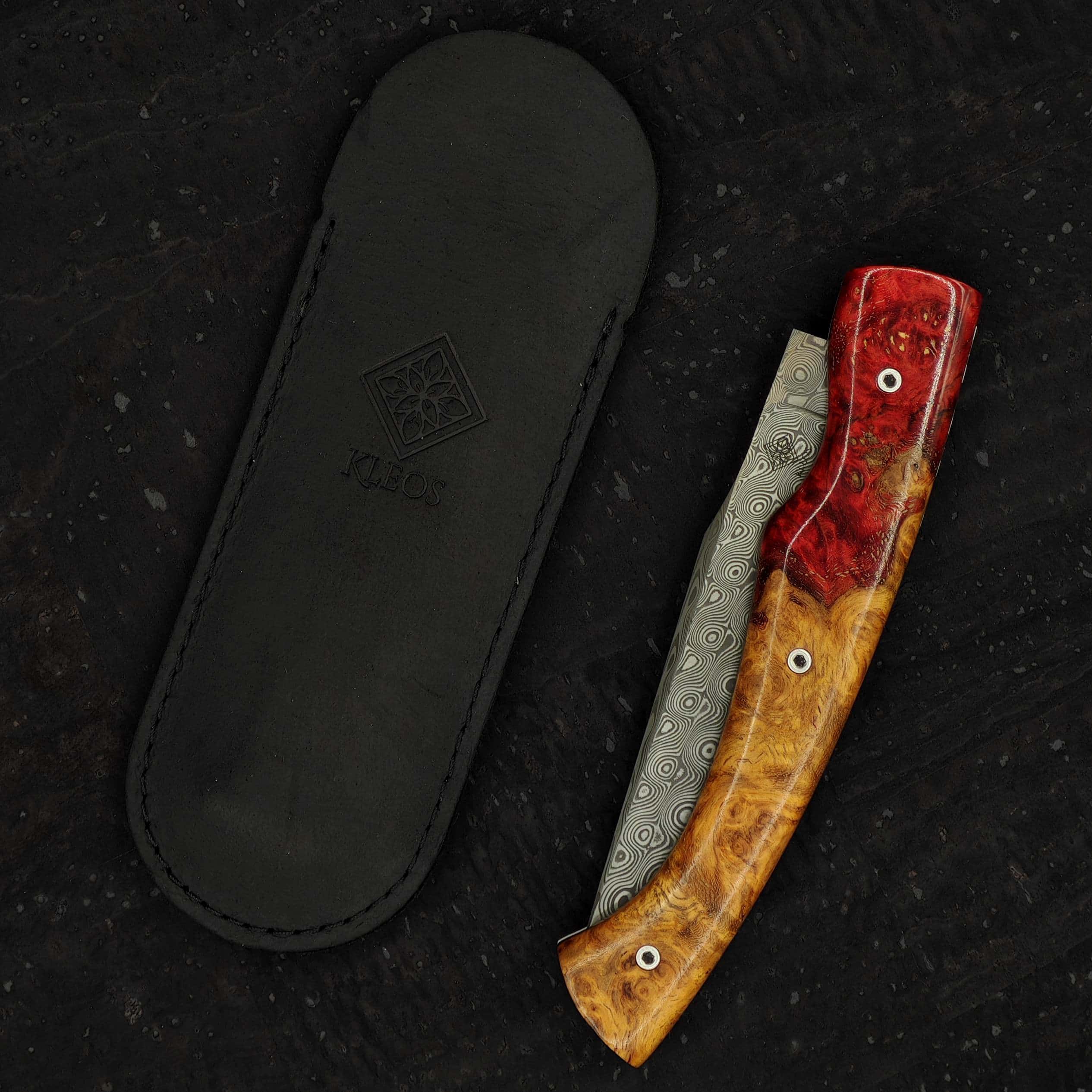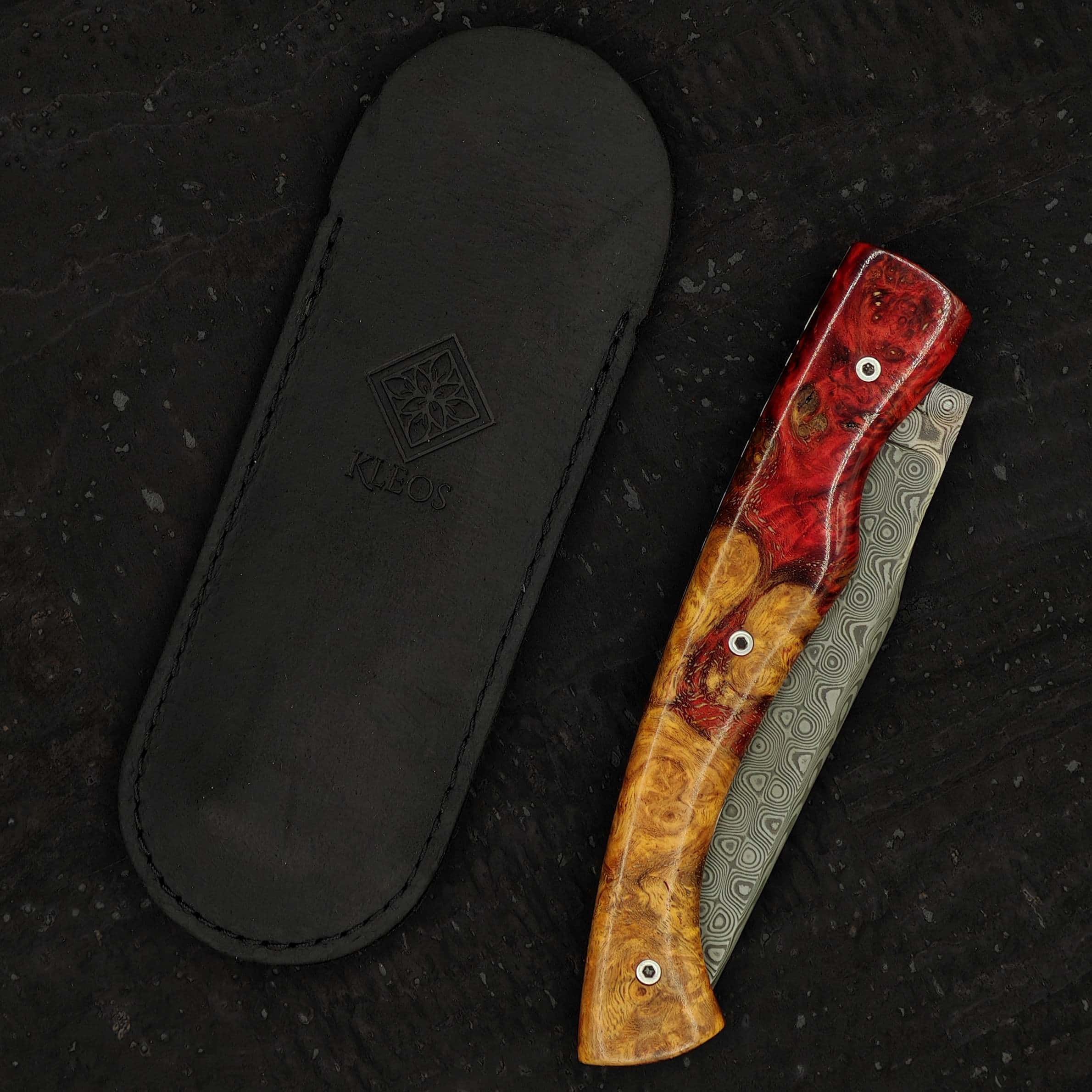 Cet étui complète parfaitement l’esprit haut de gamme du Couteau de poche damas Lykos.