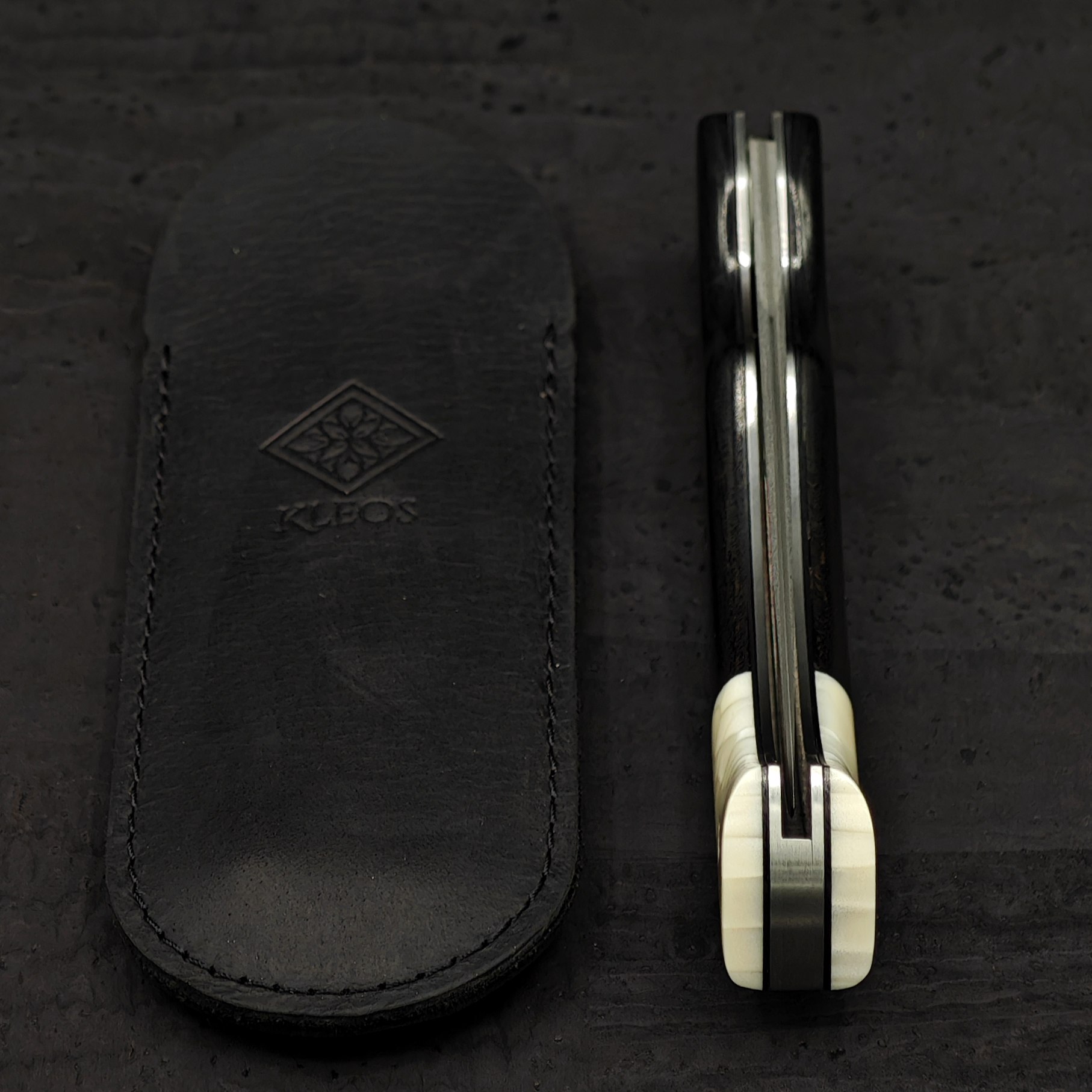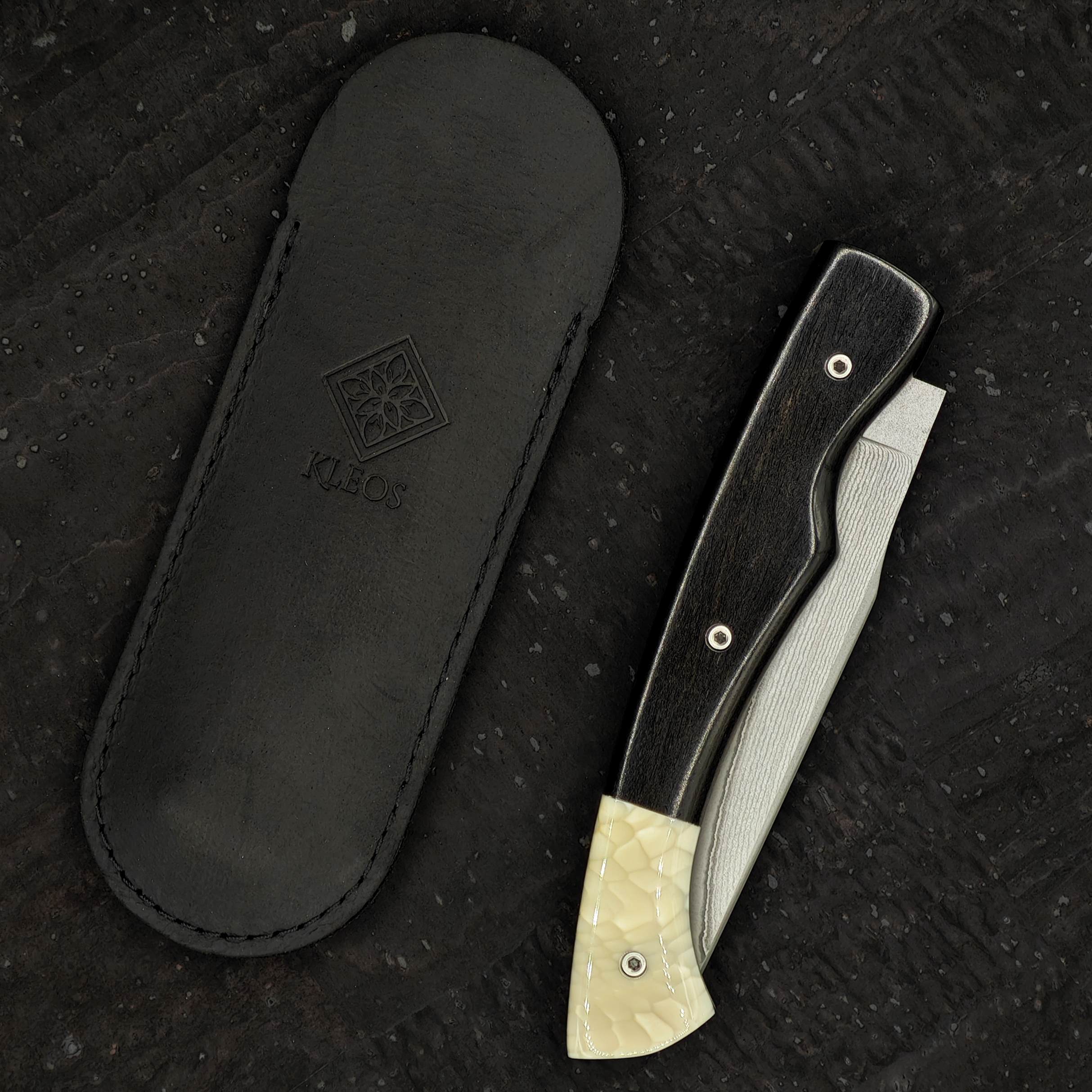 Pour protéger et transporter ce bijou de coutellerie, un étui en cuir sur mesure accompagne le Couteau pliant bi-matière Lykos, ajoutant une touche d’élégance supplémentaire et assurant sa sécurité au quotidien.